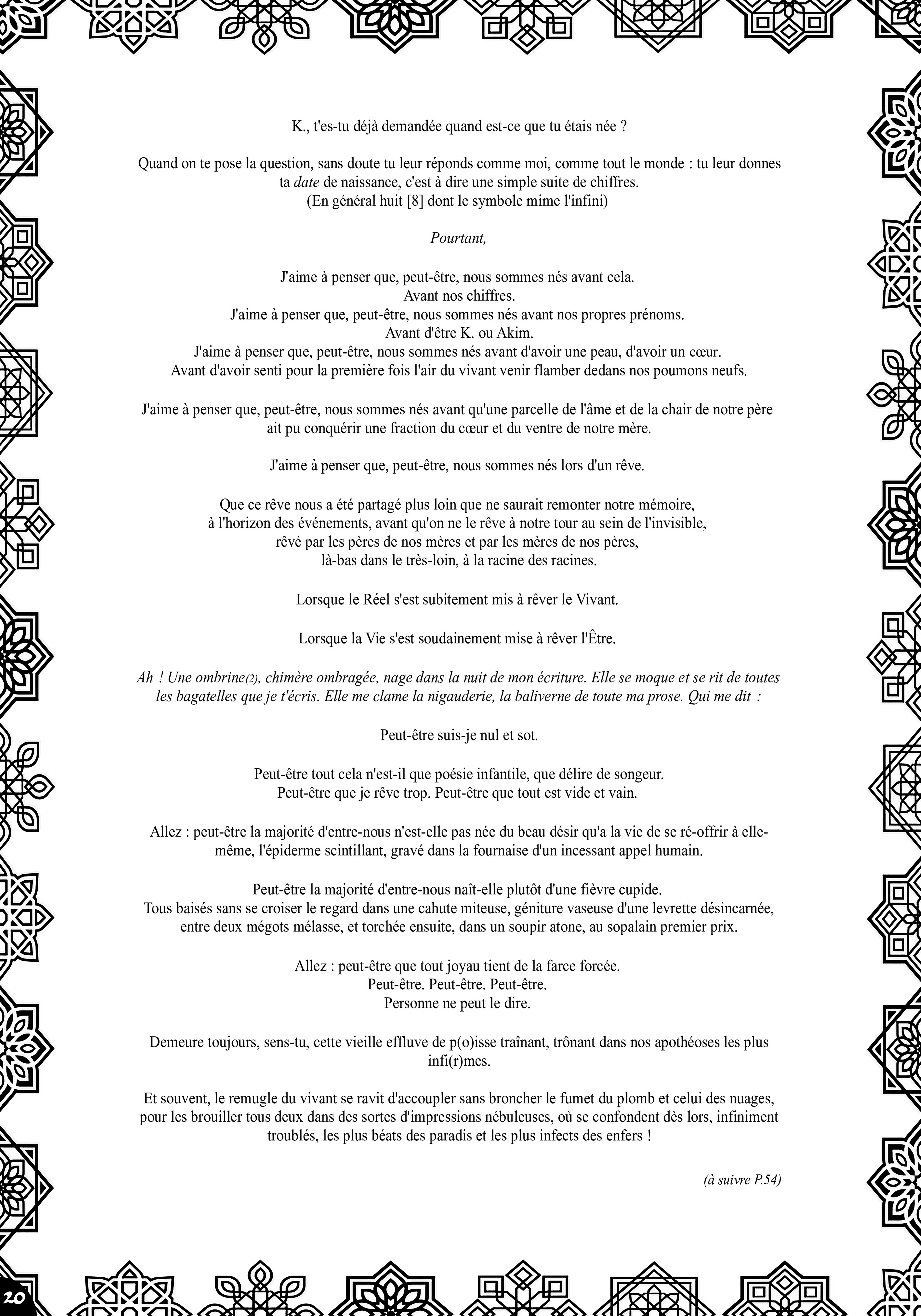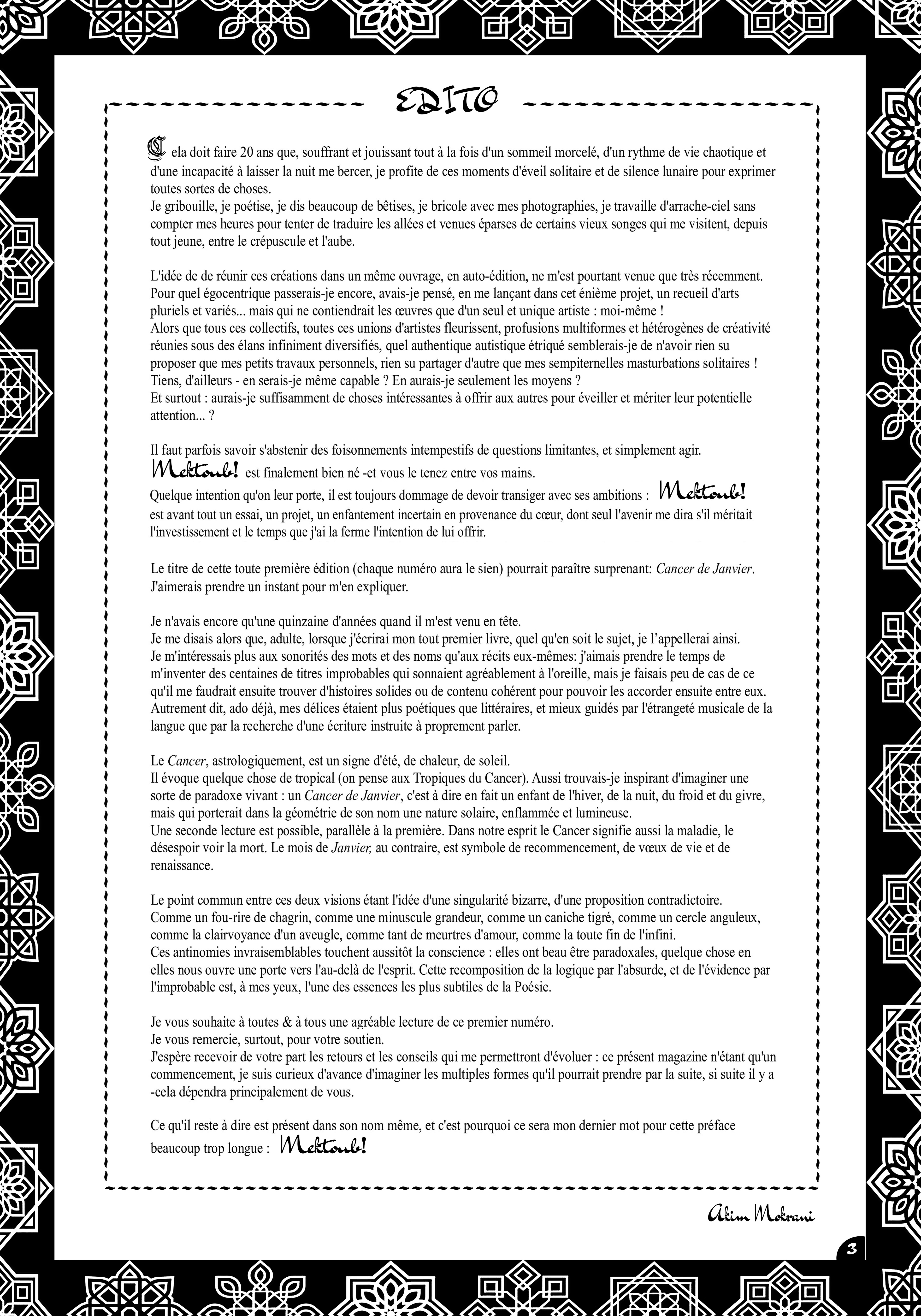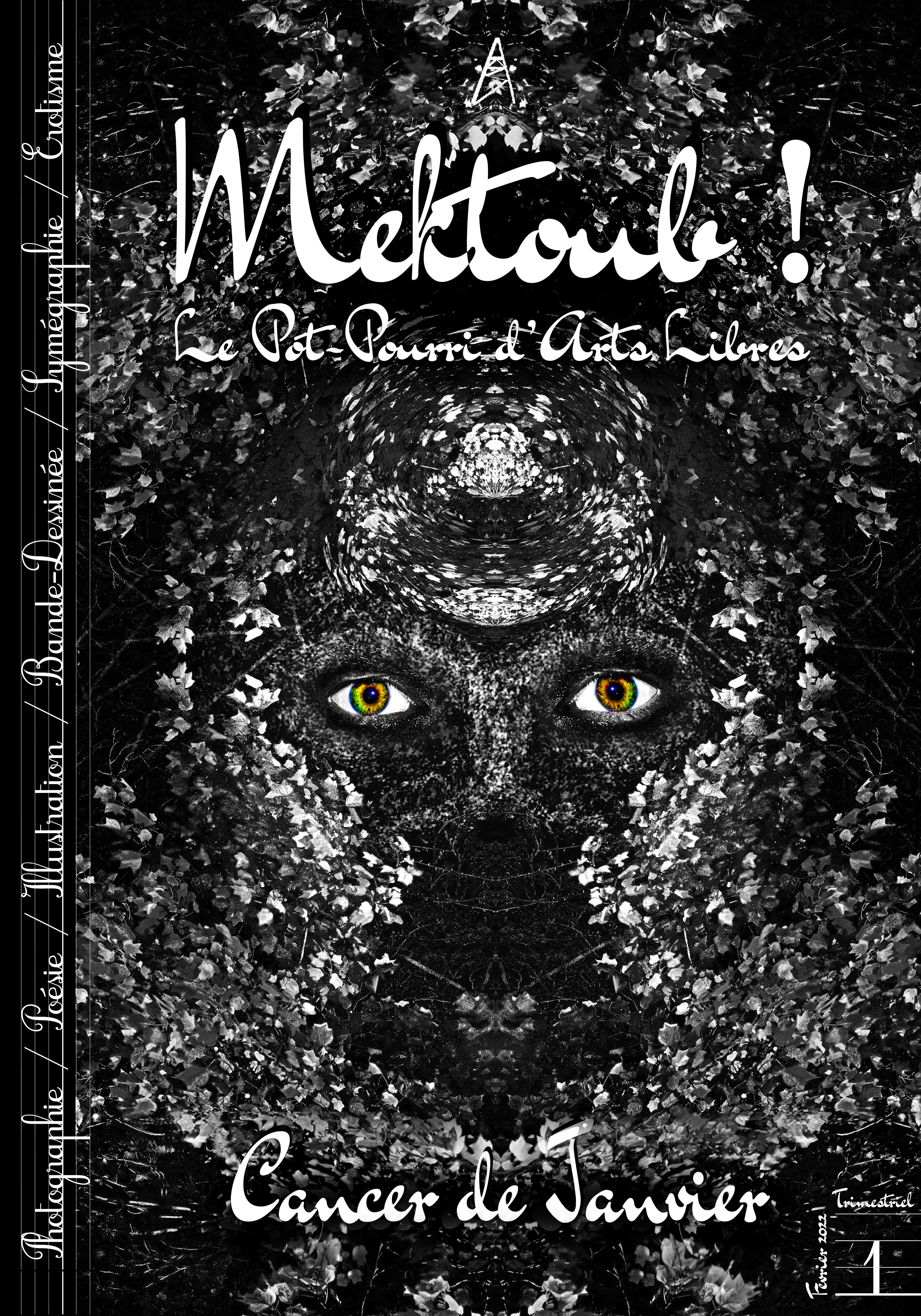 Le premier numéro de Mektoub! est sorti en février 2022. Il rassemble aléatoirement photo, dessin, symégraphie et poésie sur 60 pages au format A4.